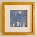 夜の街並みと、白い鳥を描いた幻想的な作品です。