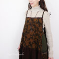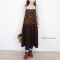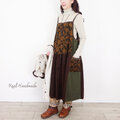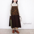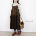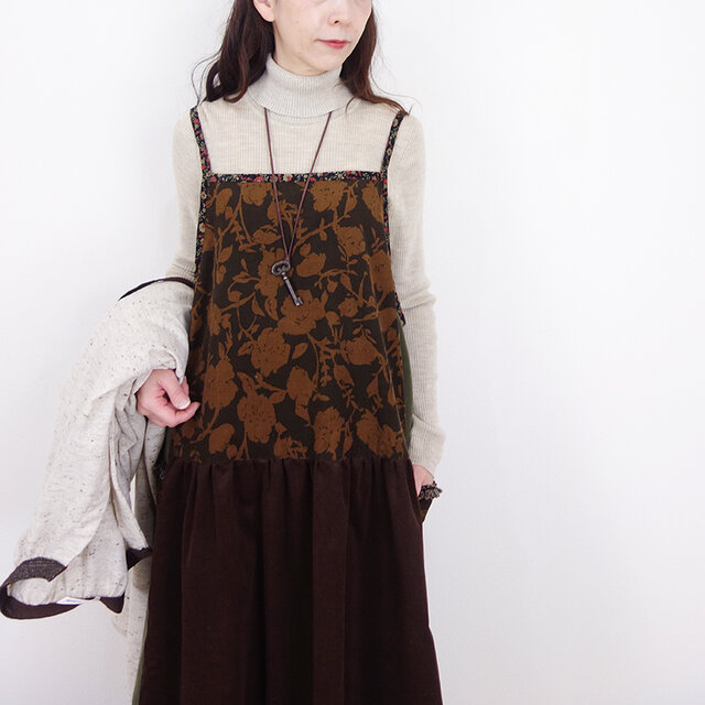 シルエットアートフラワーとブラウンコーデュロイのキャミワンピース