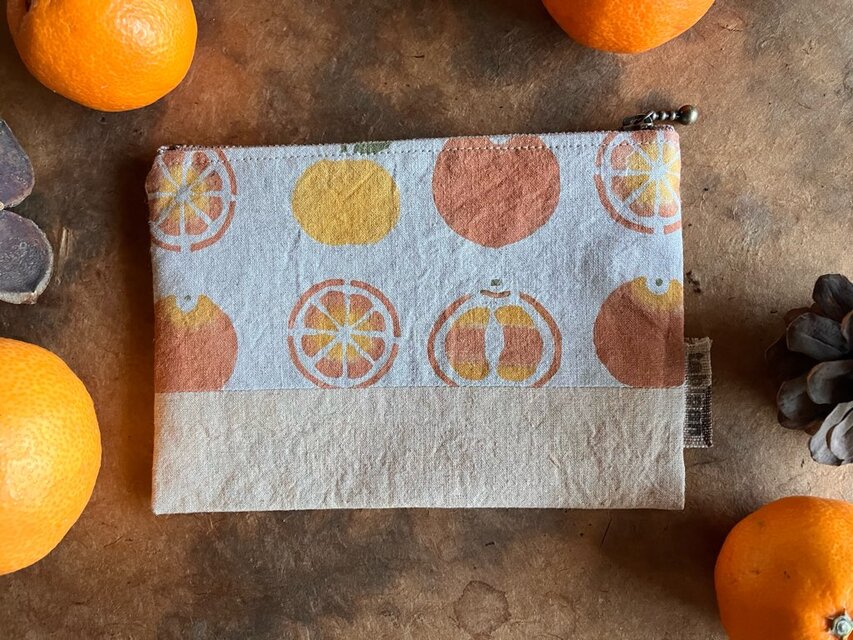 ミカンの国から届いたおいしいみかんを食べながら、作ったポーチです。