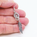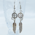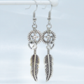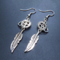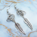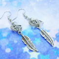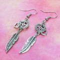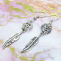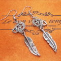 人気のあるフェザーと歯車を組合せたアンティークシルバーのスチームパンク風ピアスです
