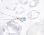 まるで光をまとった水のしずくを、そのままジュエリーにしたようなしずく型ブルートパーズのシルバーネックレス。