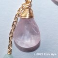 片方は、一連の中で大粒のモルガナイトをワイヤーで留めた時にチェーンを下げ、一番下に初春らしい淡いエメラルドを一粒下げました