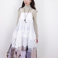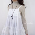 ・ワンピースやスカートの上に重ねて、裾のレースを見せるレイヤードも◎