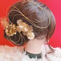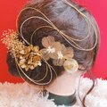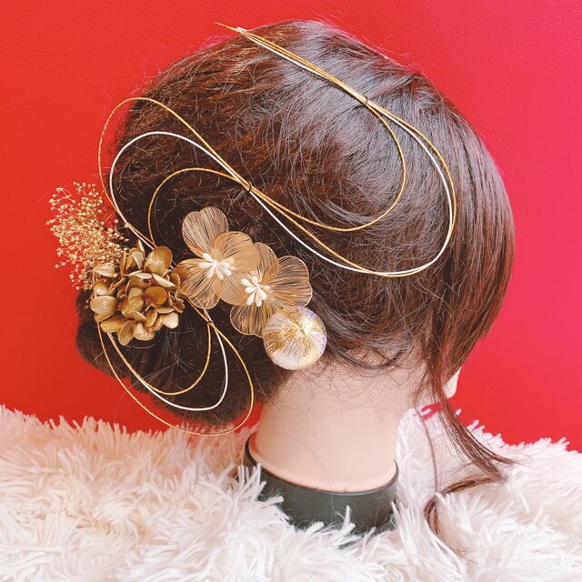 成人式髪飾り☆結婚式髪飾り☆卒業式髪飾り☆プリザーブドフラワー☆和装☆袴ヘア☆振袖☆ゴールド☆和玉☆水引髪飾り☆かすみ草☆