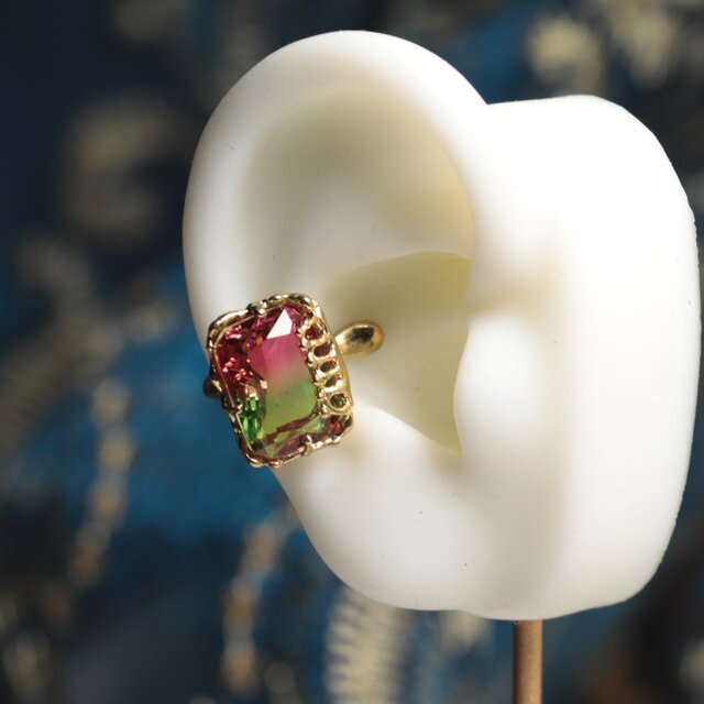 【一点もの】イヤカフ(真鍮×ガラス ピンク×グリーン)