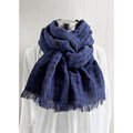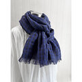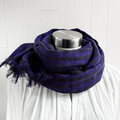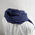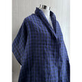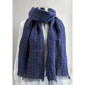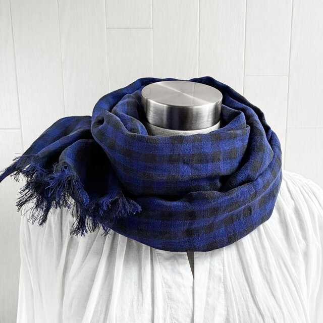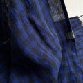 秋冬 イタリアンリネンのストール ギンガムチェック ブルー×黒