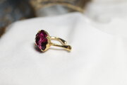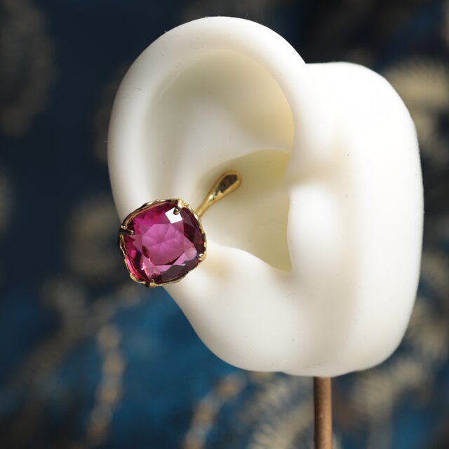 【一点もの】イヤカフ(真鍮×ガラス ルビーピンク)