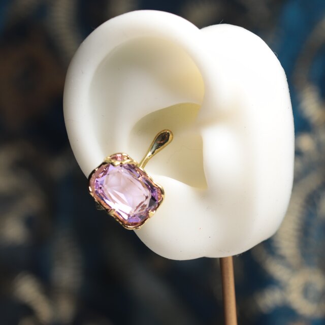 【一点もの】イヤカフ(真鍮×ガラス ライトバイオレット)
