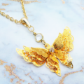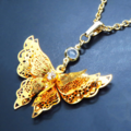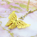 ゴールドカラー 繊細なつくりで立体的に表現された蝶のネックレス バタフライ 立体 3D 可愛い 長さ調整可 ステンレス可