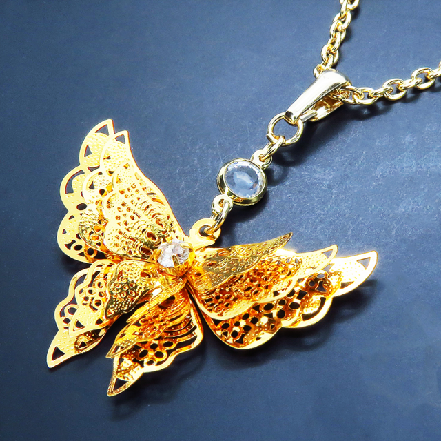 繊細なつくりで立体的に表現されたアルミ合金製のバタフライ(蝶)ペンダントネックレス