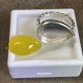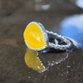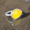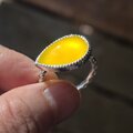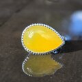 イエローな瑪瑙 はじける果実のしずく PSカボション ミル打ち シルバーSV925リング