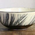 ●器全体に化粧泥を掛けてから藁を束ねた刷毛で模様を描きます。