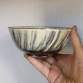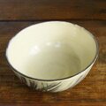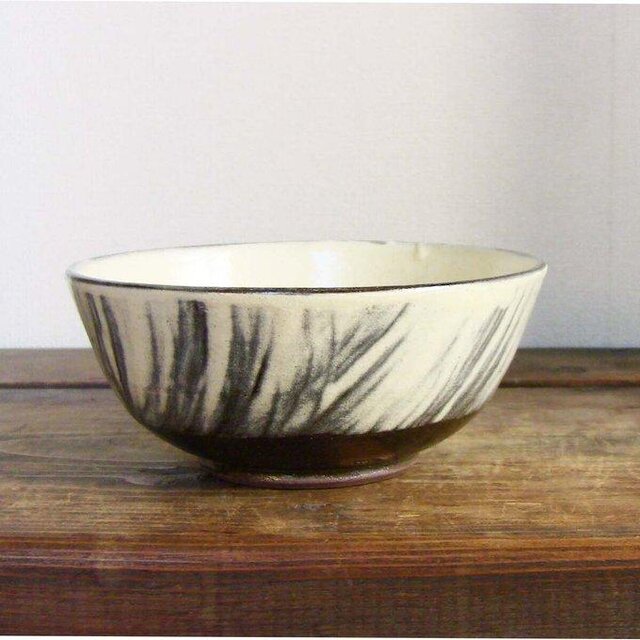素地に化粧泥を掛け藁を束ねた刷毛で模様を施してから藁灰釉を掛けて焼成しています。藁灰釉のやさしい雰囲気です。