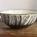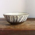 素地に化粧泥を掛け藁を束ねた刷毛で模様を施してから透明釉を掛けて焼成しています。
