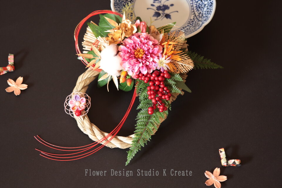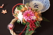 #お正月飾り #しめ縄リース #ダリア #ピンク