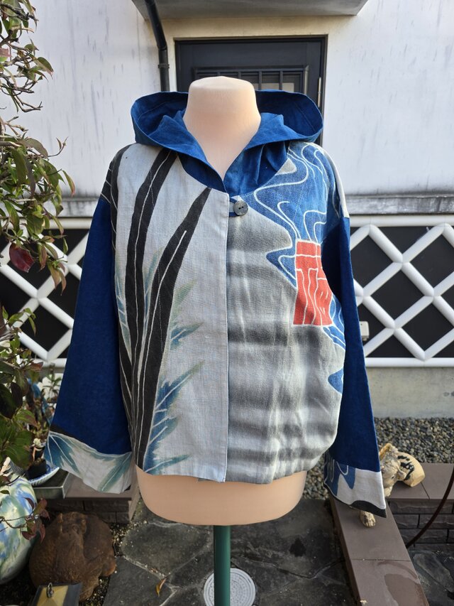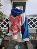 紋付きののぼりをリメイクしてフード付きジャケットを作りました。
