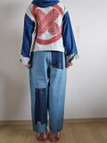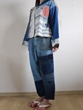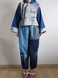 かすりのパッチワークが とっても丁寧で 美しく 色とりどりの生地も素敵にコラボ! 刺し子も 綺麗なラインで 美しい。 生地を 惜しげなく贅沢に使って 普通のパンツだと 2枚は 十分取れそう。 ワンピースにすれば とっても素敵になりそう。 プチプレゼントも 可愛い。