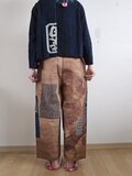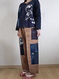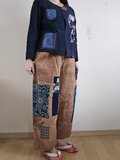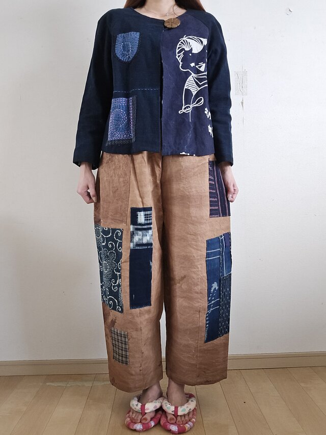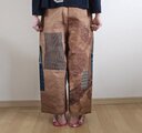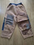 着物リメイク のぼり 柿渋染め 絣 型染め パッチワーク パンツ