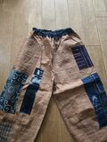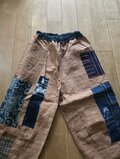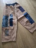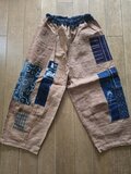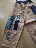 柿渋染めしたのぼりをパッチワークしてパンツを作りました。