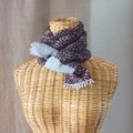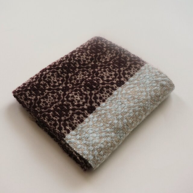 ベージュの地に茶色と水色でバイカラーにしたマフラーです。