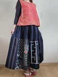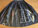半纏、藍無地、雪ん子などをパッチワークしてギャザースカート作りました。