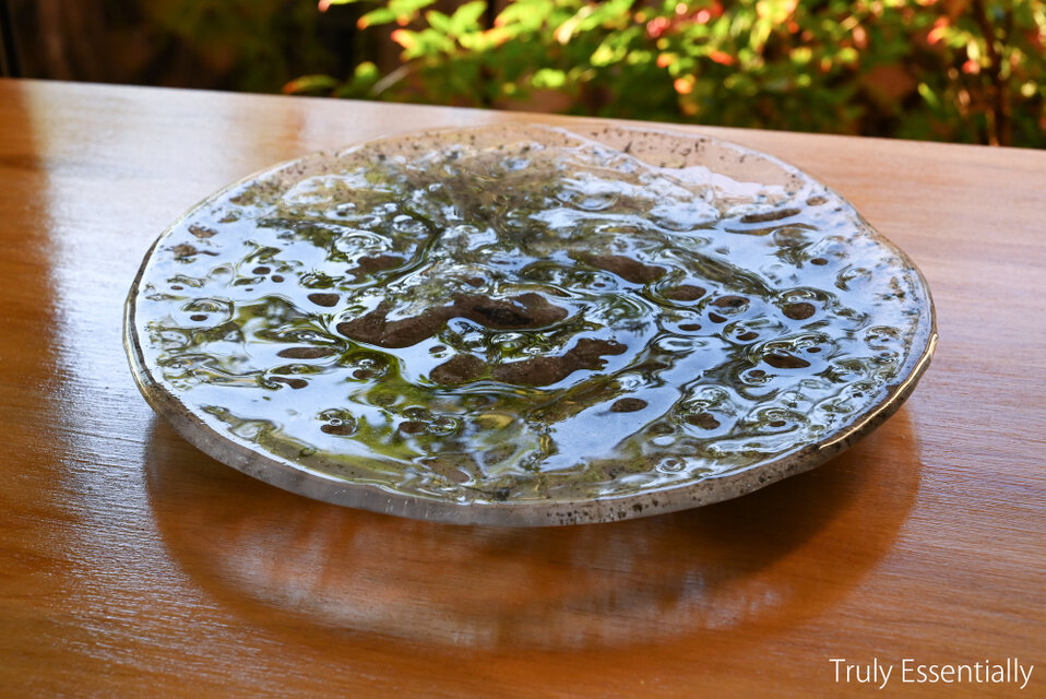 シンプルな形の中に、多彩な自然の豊かな気が共存したガラスの大皿・・・。そのまま飾ってみたり、食材や植物をのせてみたり・・・お好みのアレンジで様々なシーンでお楽しみ頂ける作品に仕上がっております。