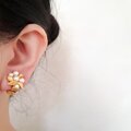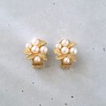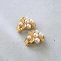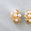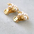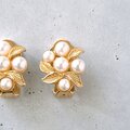 リーフがデザインされたメタルにフェイクパールがあしらわれたヴィンテージイヤリングです。