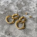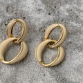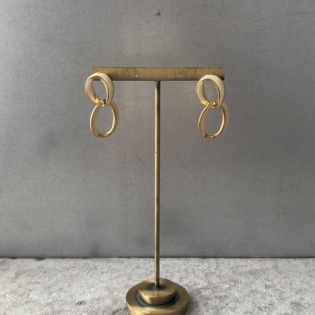 クラシカルな雰囲気のUSAヴィンテージピアス。ダブルリングにオフホワイトのエナメルが施されたお洒落なデザイン。肌馴染みのよい色合いで様々なスタイルに合わせていただけます。