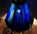 静かな夜を閉じ込めたような、ブルーを基調としたステンドグラスランプです。