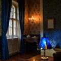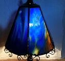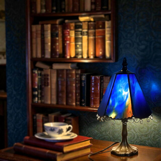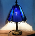 作品名「静夜」 ブルー ステンドグラスランプ ハンドメイド テーブルランプ ギフト