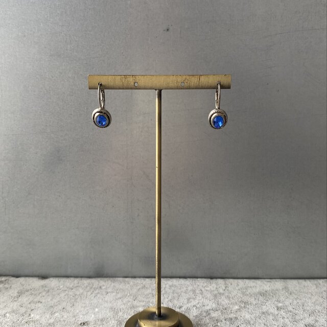 ブルーのビジューがキラキラと輝くUSAヴィンテージピアス。身につけやすいサイズ感で様々なスタイルに合わせていただけます。