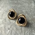 YM193-【 Monet 】モネ・ヴィンテージイヤリング 1980's Black Cabochon Gold Tone
