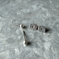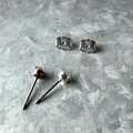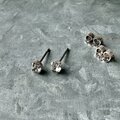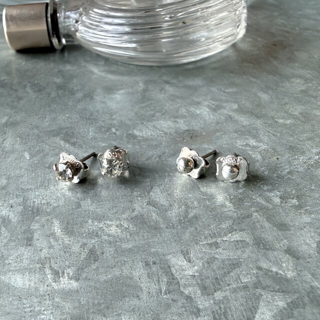 クリアなラインストーンが煌めくピアスと、シルバーメタルの小さなボールピアス。