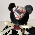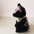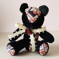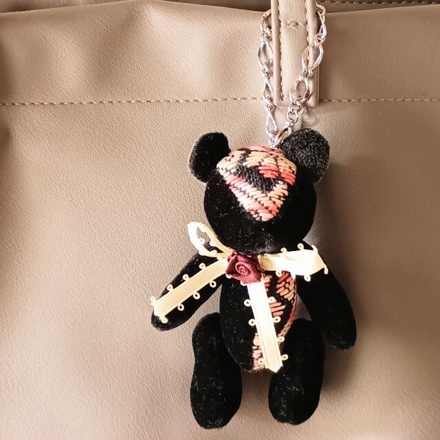 バッグにつけられるこぎん刺しのテディベアS 総刺しこぎんクマ 夜の梅