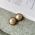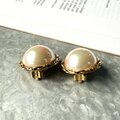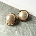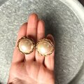 ボリュームあるフェイクパールが印象的なゴールドトーンイヤリング。