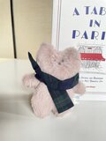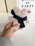 グレイッシュピンクのポリエステルファーは、曇り空の朝みたいにやさしい色合いで、触れるとふわっと体温を受け止めてくれる。