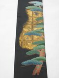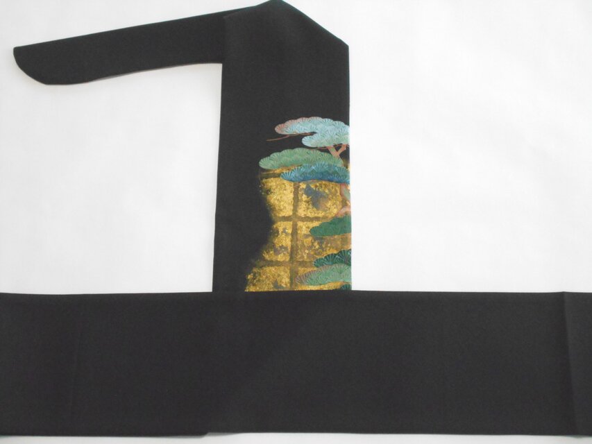 浜ちりめんの黒留袖金彩とともに描かれた松の図案です