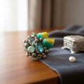 光の角度によって表情が変わるビジューと繊細な色彩の葉が織りなす立体感は、フォーマルにもカジュアルにも寄り添います。