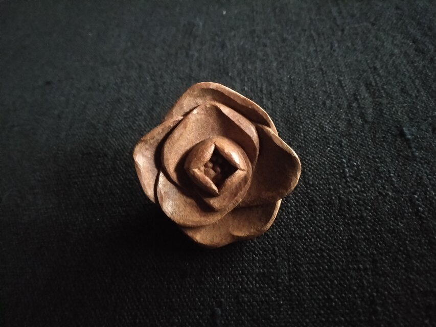 庭に咲く山茶花の花の開ききる前を彫ってみました。