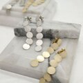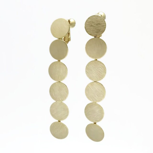 ラウンドプレートが耳元で揺れる、縦長ラインのイヤリング。