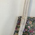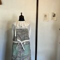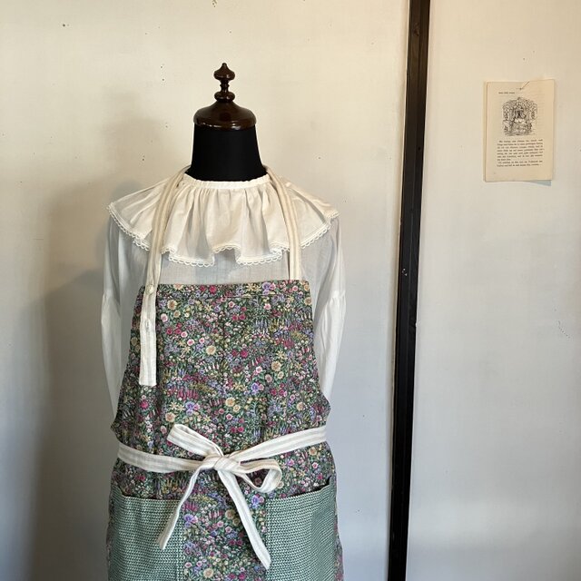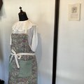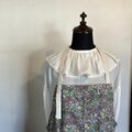 フラワープリントが目を惹く可愛らしい生地で肩掛けタイプのエプロンをつくりました。