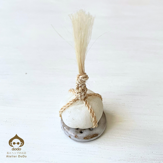 【★縁起物】おのころ水晶と精麻、陶の台座のミニチュア関守石1