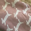 ハンドメイド☆ネックウォーマー北欧リネンピンクうさぎ刺繍ファ