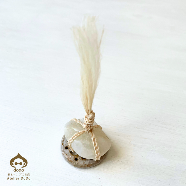 【★縁起物】おのころ水晶と精麻、陶の台座のミニチュア関守石2