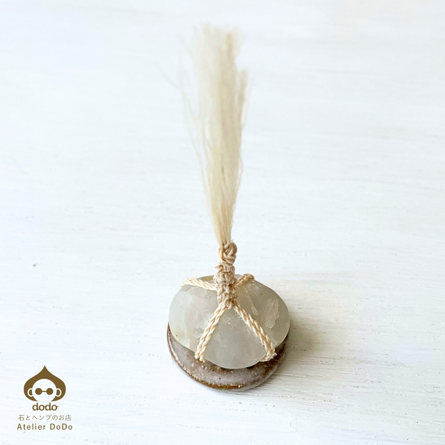 【★縁起物】おのころ水晶と精麻、陶の台座のミニチュア関守石3
