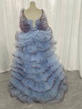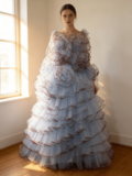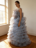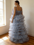 人気上昇!キャミソール ブルー カラードレス ラッフルフリル ボリュームドレス 揺らめく裾 前撮り