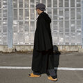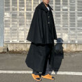 フードを外せば、トンビマント本来のシルエットと空気感をより純粋に楽しめます。