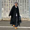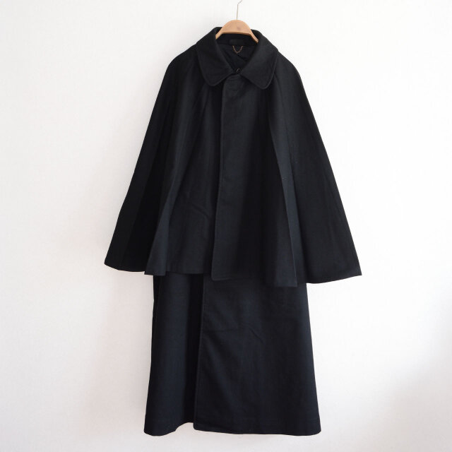 トンビマント特有の大胆なシルエットでありながら、全体の印象は落ち着いており、過度な装飾に頼らない静かな佇まいが魅力の一着です。