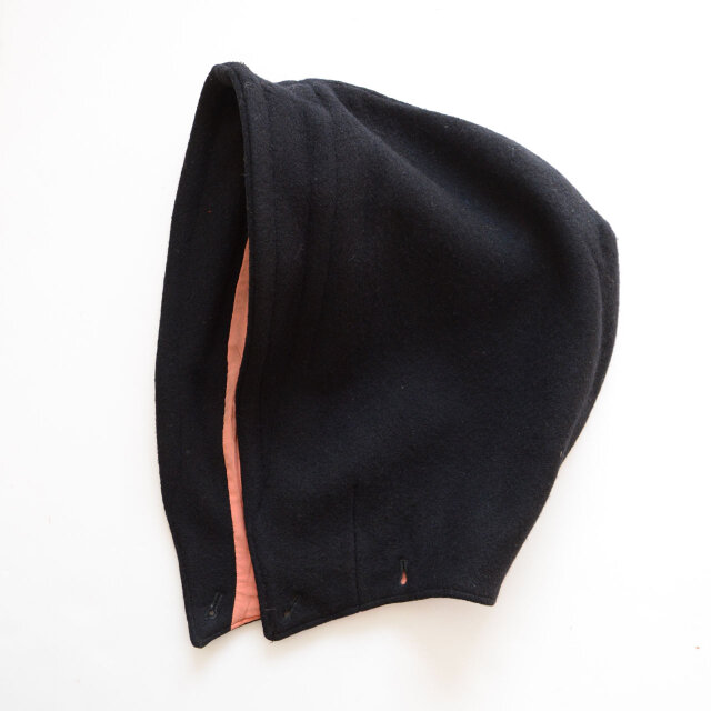 大正〜昭和期頃に作られたものと思われる、マントに付属していたと考えられるウール製フードです。