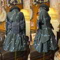 凛とした黒地に、落ち着いたブルーとパープルの木の葉模様が、流れるようなラインで描かれています。派手すぎず、それでいて吸い込まれるような奥行きのある色彩が、神秘的なオーラを放ちます。伝統が持つ静寂と、チュールエプロンが奏でるロマンチシズム。鏡の中の自分は、かつてないほど自由で、誰よりも輝いているはず